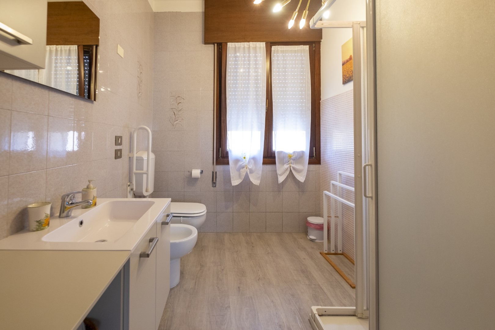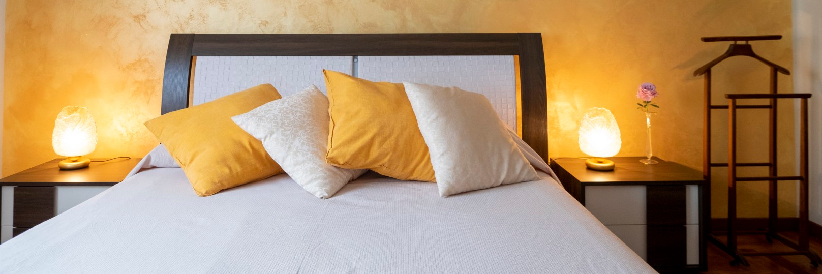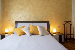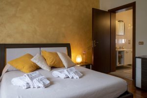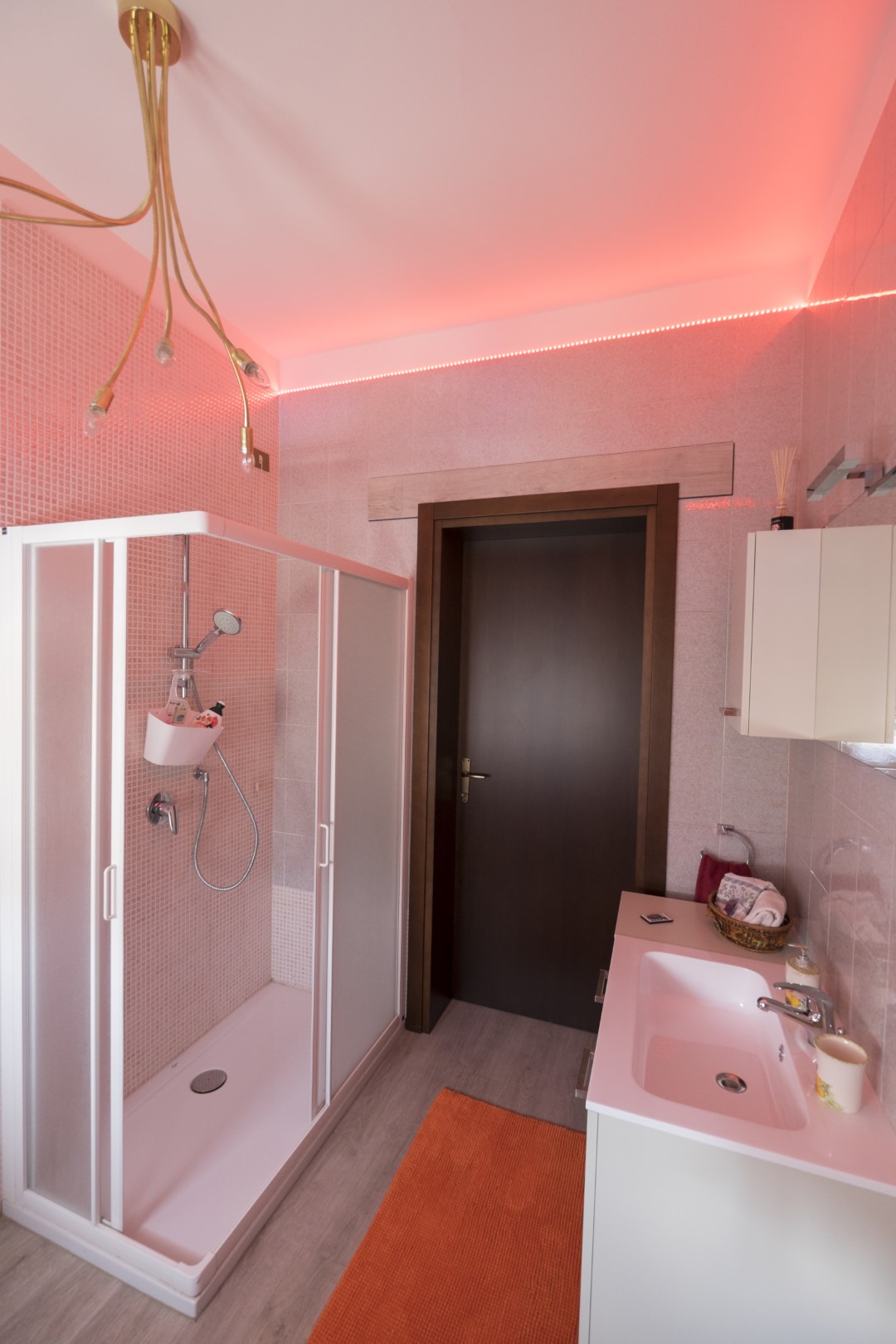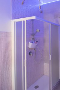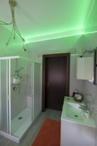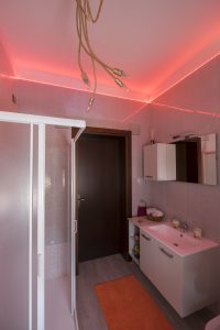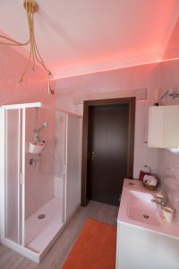 Camera matrimoniale con bagno interno, ampio piatto doccia e romantiche luci multicolor a led. Letto moderno con luce a led nella testata. Locale climatizzato e regolazione della temperatura indipendente con riscaldamento a pavimento. Wi-Fi veloce.